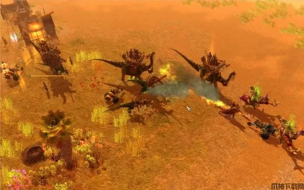 在资源管理方面,本作相当传统,上手容易。本作的资源主要有石头、木材和食物。并且玩家还可捕杀游戏中的动物充作食物。不过对于本作的食肉恐龙你得多加小心,否则捕猎者会很容易变成被捕食者。此外,游戏还提供了第四种资源,这需要在对战中获取——头颅。数量越多,你的等级也就越高,你的抗打击能力也就越强。根据当时的战场形势,玩家可以有多种策略可供选择。游戏还为玩家提供了一款“军队控制器”,使对战操作相当简约,仅需轻轻几点便可选中一组单位。这即意谓着本作不会出现繁琐的微操作。