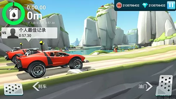 1、进入游戏之后,我们可以看到下方两个按钮分别是刹车和油门。