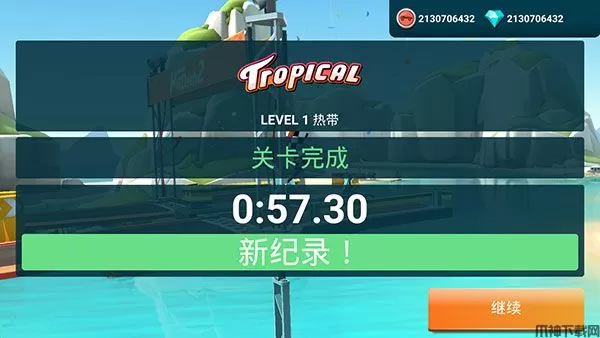 5、顺利过关后会显示玩家的关卡总用时,点击继续即可进行下一步。