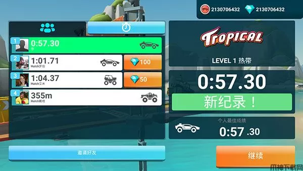7、在排行榜上一路向前:微型车、怪物车、坦克、越野车、四轮摩托、两栖车、超跑和雪地车。