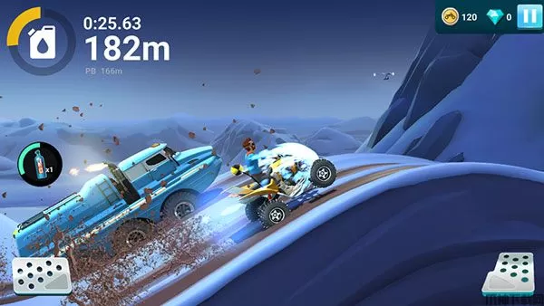 3、打造一辆怪物卡车以碾压你的对手并用不同的加速系统来改进。升级你的卡车并提高速度、抓地力、稳定性和空中倾斜度。