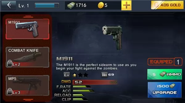 2、使用武器击败关卡中的丧尸