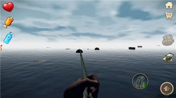 制备必需品,以此确保在海上生存下去。在小木筏上就可收集靠近的材料,而对于远处的材料可以选择抛出钩子钩过来,或是跳入海中游过去拾取