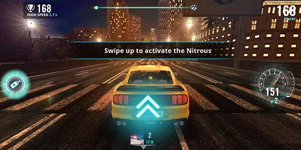 5、向上滑动屏幕即可开启氮气加速。