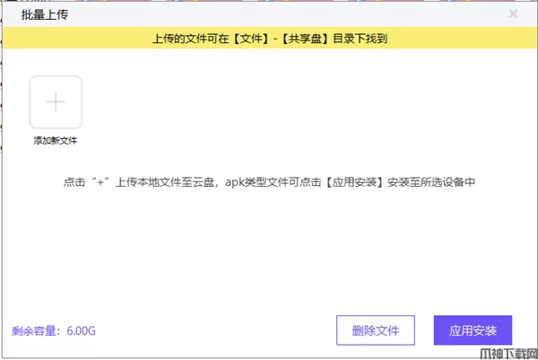 3、如为apk类型的文件,可在文件上传完成后点击【应用安装】,即可将文件安装至所选设备中