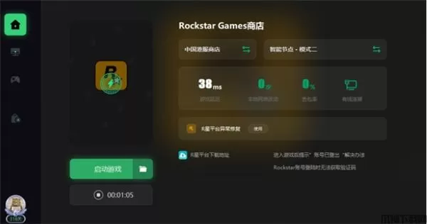 1、打开加速工具,选择R星并一键加速,没有特殊需求的玩家直接加速港服即可;