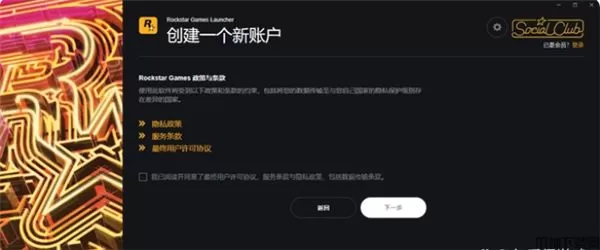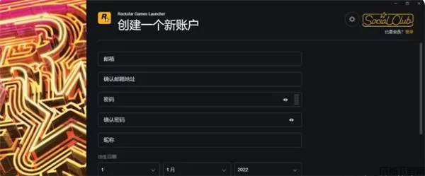 2、使用R星客户端或者官网,点击创建一个新账户。