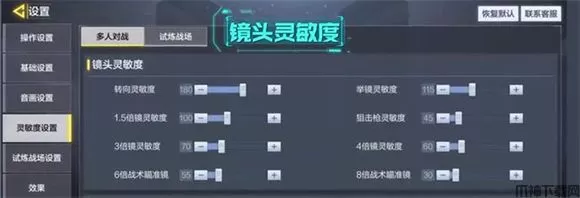 1、镜头灵敏度:是指不开镜时镜头的转动速度,在训练场练习的时候将镜头从左往右滑,能够一次转动120度到180度即可,以下是镜头调灵敏度: