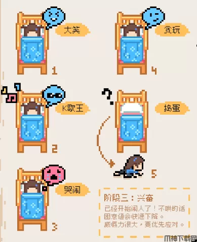 已经开始闹人了!不哄的话困意值会快速下降。威慑力很大,要优先应对。