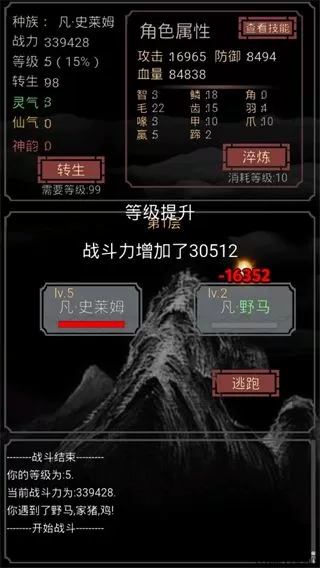 5、生存的点有很多,玩家需要从战斗力,血量,种族,转生等好几个方面来提高史莱姆的能力;