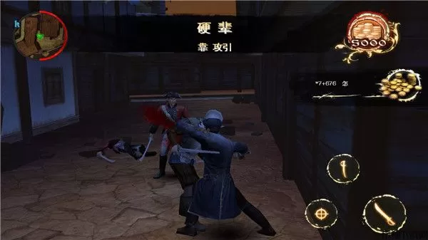 背刺游戏在操作上采用了虚拟摇杆加虚拟按键操作,游戏的动作感觉非常流畅。主角可装备的武器有刀、火枪、炮台等,并且可以通过金币升级、购买各类武器,还可以使用摇杆与跳跃来进行攀爬,动作非常丰富。