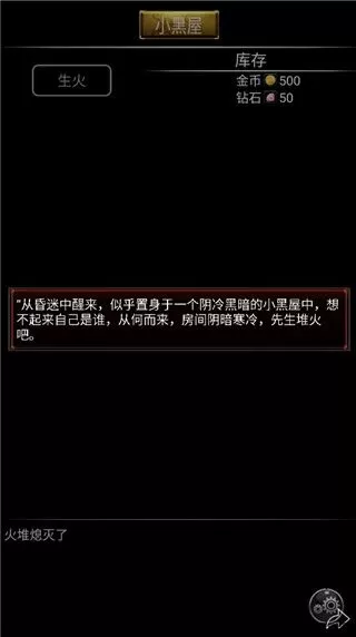 1、下载进入小黑屋传奇手游,你将作为主角置身于一个阴冷黑暗的小黑屋中,首先先生堆火吧;