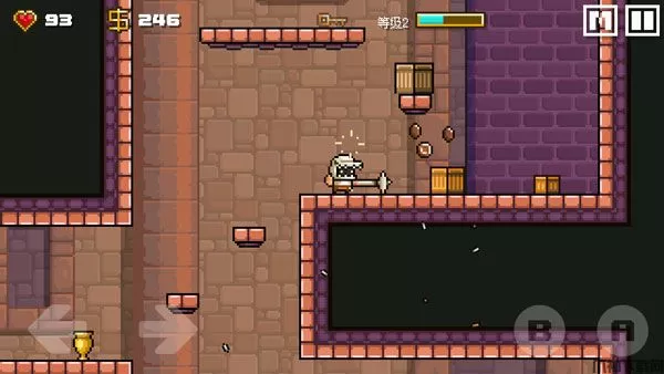 游戏画面质量虽简单,但是内容却丰富多彩,同样在操作上的表现也是如此,玩家只需要点击左下角的左右按键就能控制人物移动,而右下角的A/B按键可以控制人物的攻击和跳跃,并且长按跳跃键还能向下跳跃哦。