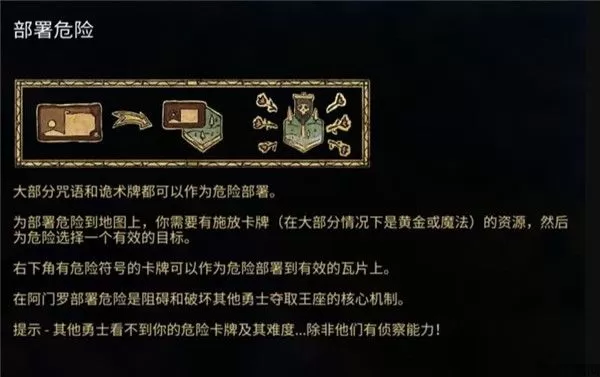 玩家可以利用法术咒语和诡计牌布置冒险。