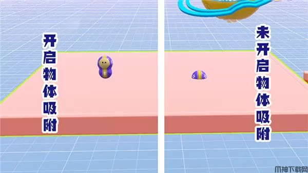 4、默认状态下吸附开启,拖动组件进入场景时,组件会吸附在场景中各地形组件的表面。关闭【物体吸附】后,再拖动组件进入场景时,组件不再吸附在地形组件的表面