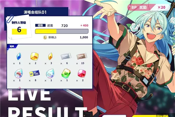 3、进入演奏歌曲,尽量自己演奏歌曲,而且尽可能多的取得分数和连击,完毕后会进入奖赏结算画面,一般这时候能够刷到1个两个人物原石,咱们点击下面运用双倍卡,这样奖赏会再一次依照上面的调理再结算一次,一般还会坠落人物原石。