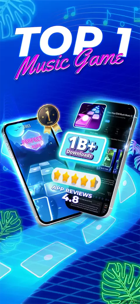 节奏弹球ios版(Tiles Hop EDM Rush Music Ball)是一款非常好玩的节奏性趣味游戏,游戏将华丽的游戏场景与动感十足的游戏电音完美的融合到了一起,玩家手指跟随动感的音乐节奏飞舞,就会收获到无比致畅快淋漓的游戏感受!同时游戏拥有大量的个性化界面和音乐背景,有大量的音符穿梭在游戏中,让玩家能体验到非凡的游戏乐趣。并且节奏弹球ios版的玩法也非常简单,只需要按住并拖动来操控,使球掉落到中心以改变砖块尺寸,获取钻石以解锁曲目、弹球和主题,就算是老人小孩一上手也可以快速游戏。而且节奏弹球游戏内律动感、节奏感都十分强烈,可以赋予玩家畅快的音乐游戏体验。同时节奏弹球游戏还内拥有海量的热门音乐曲目,不管是抖音、热门、经典、DJ及其他海内外流行歌曲这里应有尽有,能够让玩家尽情跟随节奏律动,释放音乐节奏带来的爽快感。
