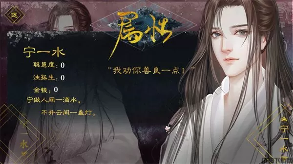 我劝你善良一点橙光游戏最新版是一款有趣古风破案游戏,本作具有精美的人物立绘以及场景设计,这款耽美题材的剧情文字游戏从多方面诠释了人性。男主角是一个实实在在的好人,但不是那种愚昧的好,他善恶分明,他的心态非常的好,破案技术逆天,撩妹子的功力也真的超级厉害,对人常说的一句话就是,我劝你善良一点。秉持佛系养身,就是这样的一个性格造就了他在破案上跟其他人的不同。四个主角个性迥异,撑起了整个故事,参与破案的女生有非常的多,随着主角遇见了更多的人和事,将引发一系列离奇的案件,在破案的过程认识了很多好朋友,身边的女生也都爱慕他,选项不多偏剧情,结局只有HE。有所求的付出若是得不到回报,很容易让一个人变得怨天尤人,那么水水两世的淡然乐观,是不是因为他无所求呢?