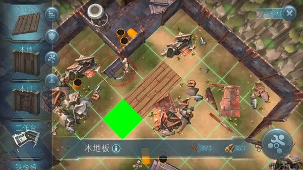 图中圈出位置就是避难所的建造功能,这里有着多项建筑可已建造,不同的建造所能提供的功能也会有所不一,这里首要建造的是地板,因为其他大部分的建造工具是需要放置在地板上才能安置,否则你将建造不了。