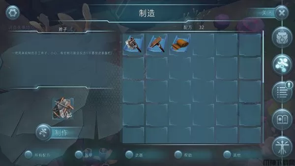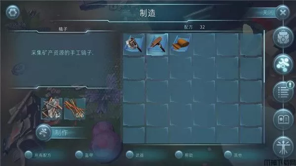 4、收集你平时遇到的所有材料,就可以制作武器和盔甲,这样你才有机会生存