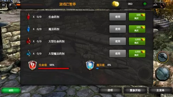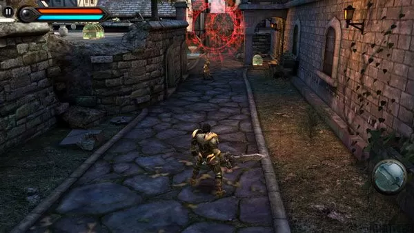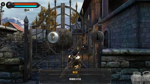 国王村:在普通难度下,属于纯粹新手关,木桶,罐子都是可以砍的,里面有金币,先练练手。敌人来了!会暂时出现一个结界,把你困在这个战场上,直到消灭所有敌人才能离开。开头的小怪就是来送死的,体验一下砍杀和操控吧。游戏支持自动瞄准怪砍杀的辅助系统,总的来说还是比较好用,但有时你想优先杀某怪或面对弓手和法师要尽量快速近身灭之,可能需要调整一下,不要连按,而是朝想杀的怪先冲过去砍