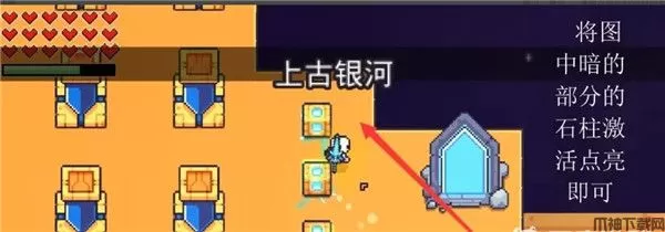 3、然后使用角色的装备,可以用长匕首攻击机关,点亮黑暗的柱子。