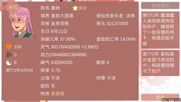 升满99级后短时间内探索很快,但遵循机制从99级后开始越来越慢,然后再没办法变快。探索作用:可以捡回灵蛋/徒弟/遇到各种人事物。