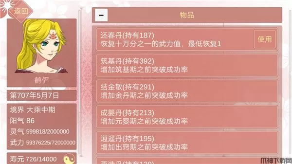还春丹 在人物武力值低于其最大上限的时候送可以加较多好感。