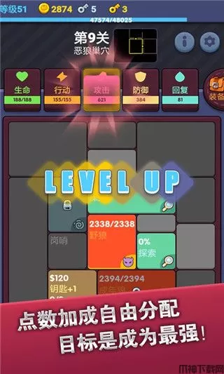 4、用钥匙解锁未开放的区域,解锁后可以继续探索,从而获得更多的金币和经验,从而可以快速提升关卡等级