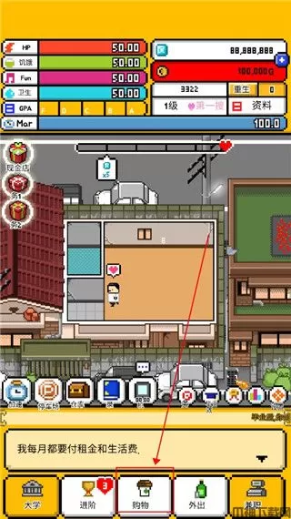 5、如果觉得你目前的生活条件过于差劲,我们可以点击购物
