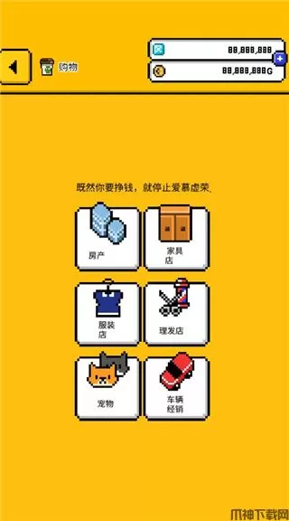 6、在这里你可以花费金钱购买房产、车辆、家具、衣服、宠物