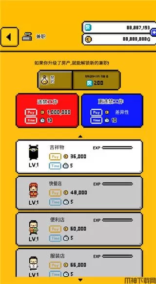 8、目前适合你的兼职只有吉祥物,其余兼职需要升级房产才能解锁