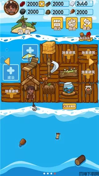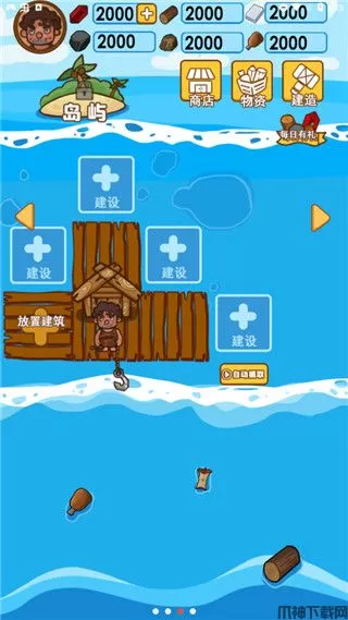 2、收集漂流中的各种材料,以进一步建造自己的海上住宅;