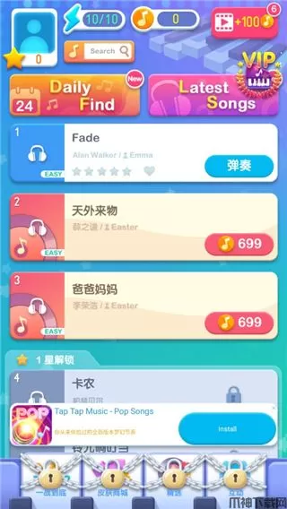 4、等级解锁钢琴曲和乐器,丰富玩法给你无限激情和乐趣体验。
