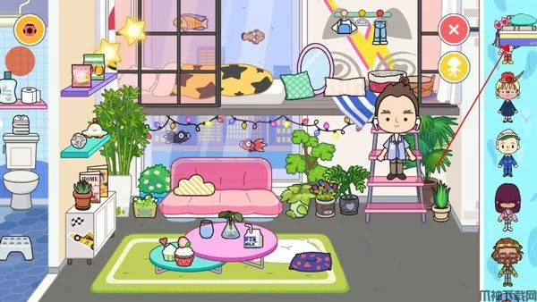 将人物放进房间后,即可点击购买的家具用品,装修房子。