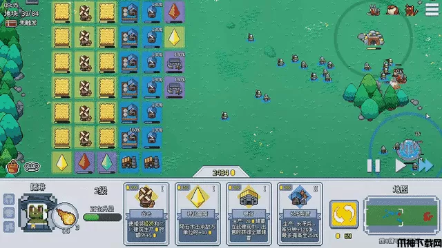 建筑会自动生产金钱或作战单位,并根据位置获得联动增益。