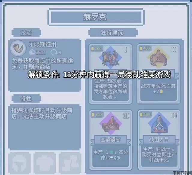 混乱15:即时战略:商店刷新免费,但游戏不可暂停。
