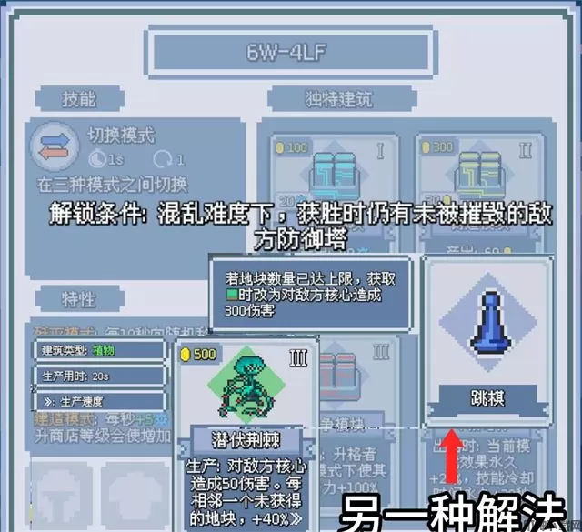 使用人类指挥官-布拉娜德的特独特建筑-潜伏荆棘,行李箱会停留180秒,敌方核心剩一点点时,场上的建筑-潜伏荆棘全部卖掉,商店里留一只,行李箱出现後再放置建筑-潜伏荆棘。