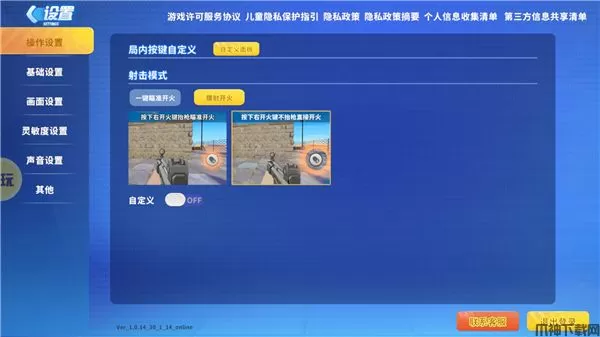 1.基础设置。基础设置里面的射击模式,我们可以看一下。那里有一键开火模式和腰射模式。建议点腰射模式。因为一键开火模式很容易被对手击败,腰射模式,可以在被对手接近的同时,做出开镜和不开镜的决定。