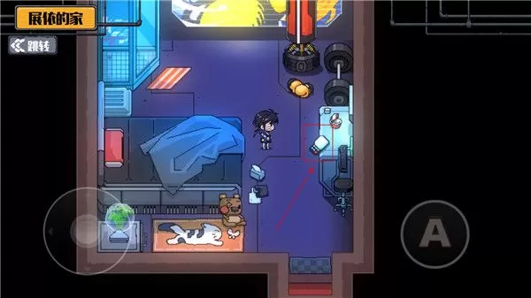 2、主角要去参加拳赛,所以先移动到桌子边的智能终端处,然后发现智能终端损坏掉了,要去修炼铺修好它。