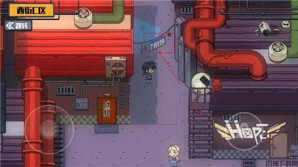 4、出门后按照路牌指示一直向上走即可到达修理铺。路上遇见其他人物只要靠近就可以对话,从他们口中能够了解到更多的剧情细节。