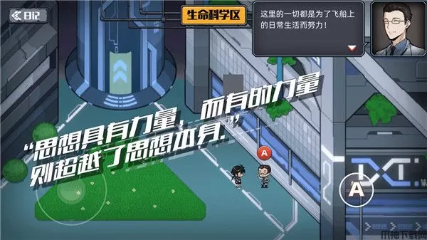 6、靠近修理员开展对话。他在帮你修理时会介绍巴别塔游戏,你最后决定使用他的机器进行资格测试,向右边移动到另一个房间,靠近机器开始测试,随后正式进入游戏体验。