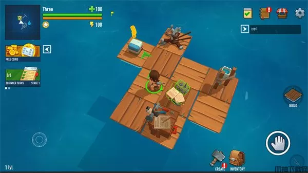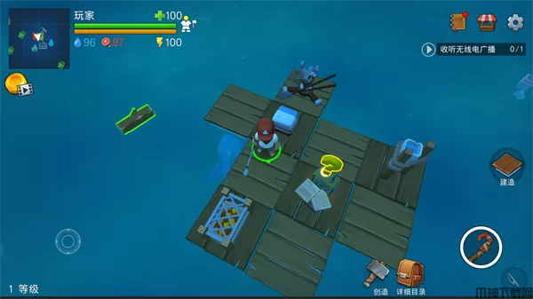 1、玩家建造木筏,乘坐木筏到其他的小岛进行探索。