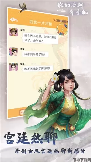 如果你是甄嬛传10级爱好选手,亦或是想体验一下不同的宫斗游戏,那么不妨来试试假如清朝有手机官方版,这是一款古风宫廷女性向的文字冒险类手游,游戏画面精美细腻,其中人物、服装、宫殿以及景物都采用3D效果建模,将传统宫廷建筑精湛复刻的同时,又加入了现代审美,唯美的元素使游戏与现实完美结合。在这里玩家将要扮演一个入宫参选的秀女,需要,通过对话触发剧情,铲除宫中毒妃,大胆调戏皇上,窥探妃子们的秘密,与各种角色进行互动,层层升级成为后宫之主。