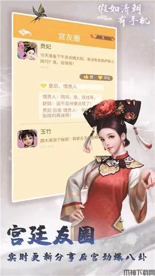 如果你是甄嬛传10级爱好选手,亦或是想体验一下不同的宫斗游戏,那么不妨来试试假如清朝有手机官方版,这是一款古风宫廷女性向的文字冒险类手游,游戏画面精美细腻,其中人物、服装、宫殿以及景物都采用3D效果建模,将传统宫廷建筑精湛复刻的同时,又加入