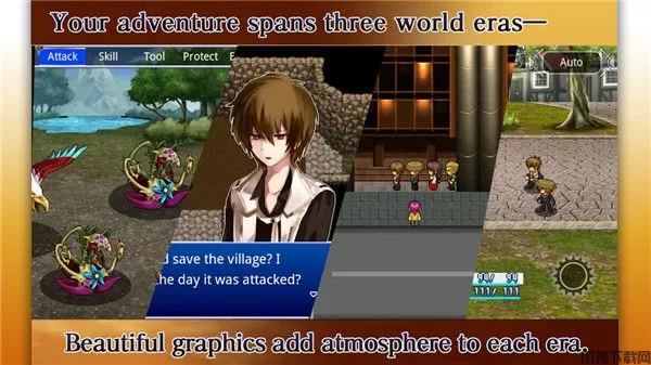 时空复仇者手机版(Aeon Avenger)是一款典型的日式风格的RPG游戏,但是画面保持了一种传统的风格,并没有采用当下比较流行的3D画面和绚丽效果,但是日式游戏更加注重的是游戏的可玩度,而非画面。另外,游戏的画面还是比较高清的,即便是在高分辨率的平板电脑上,也感觉到了。在游戏中,你将要穿越数千年的历史,回到另外一个时间中去,参与到里面的各种战斗。游戏拥有一个比较独特的走位系统,你需要获得各种独特的走位方式,通过时间的旅行来完成各项任务。游戏中,玩家将扮演一个复仇者,为了帮家人以及村民们复仇,一路通过战斗提高自己的能力,并去了解逐步解开的真相。