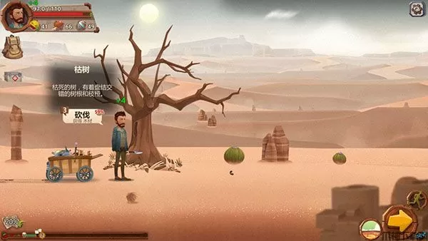 (有几个伸手可及的资源往往被玩家错过,一是随风滚动的草团,连续点击可获得枯草,二是身边嗡嗡环绕的苍蝇,鼠标点中直接空手抓昆虫)