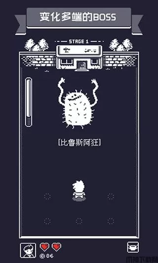 1、地图上没有小怪物。当你进入竞技场时,你必须面对老板。多变的BOSS不容易击败。