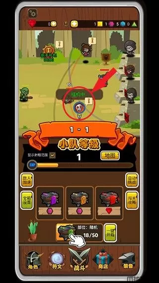 玩家点击下方战斗进入战斗界面,再点击屏幕中间的挂机中骷髅图标即可开始战斗。
