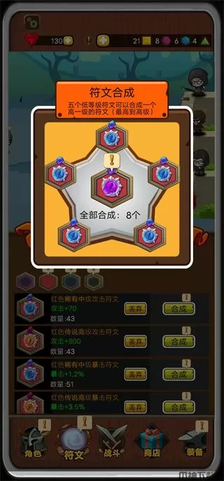 玩家点击左下角符文,可以进行符文的合成,有利于提高队伍的实力。